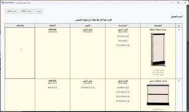 المحتوى هنا مترتب حسب منطق الشغل الحقيقي: اختيار الوحدة، التعديل، إخراج الفاتورة، استخراج التقرير، ثم تجهيز الـ Cut List للتنفيذ.