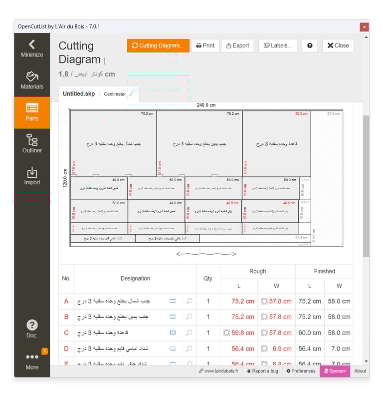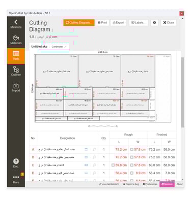 الـ Cut List أو Cutting Diagram من أهم نقاط القوة في المنظومة لأنه ينقل التصميم إلى مرحلة التصنيع بشكل عملي ومنظم.