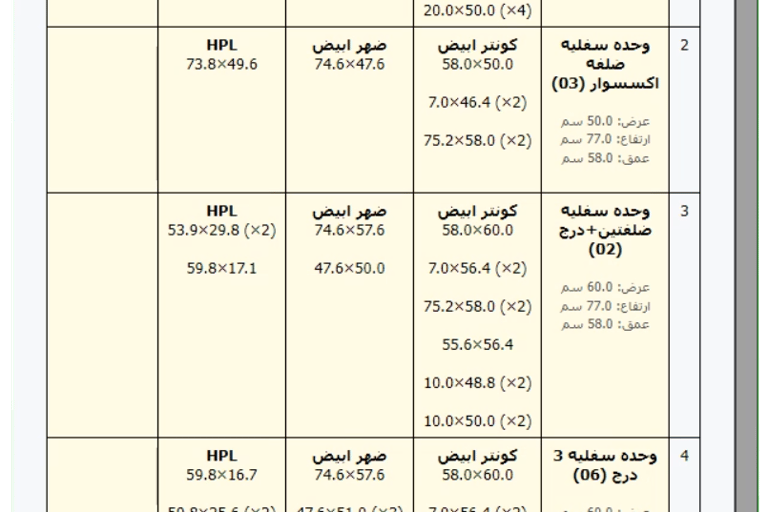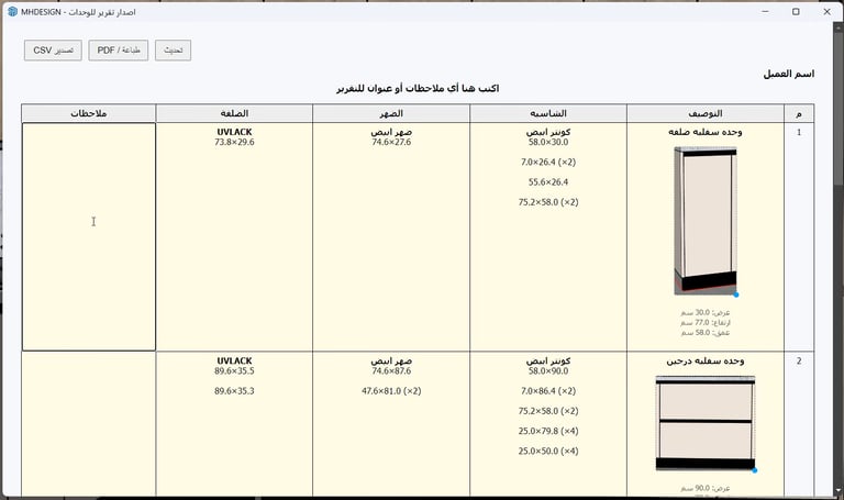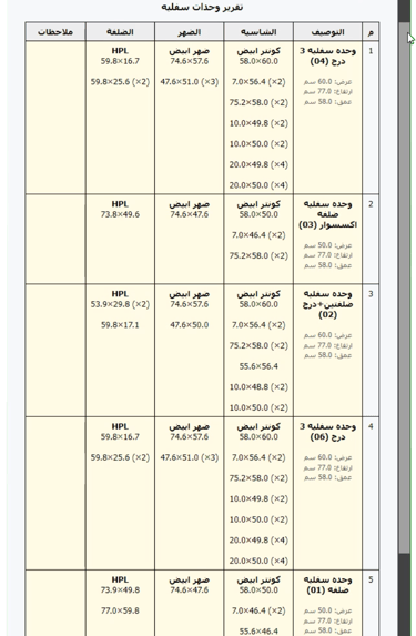 الصوره دي توضح قيمة عملية جدا:تقرير منظم لكل وحده,و فيه تفاصيل الخامات,الشاسيه,الضهر,الضلفه,و الملاحظات.