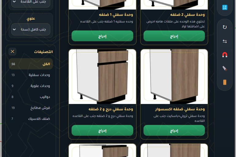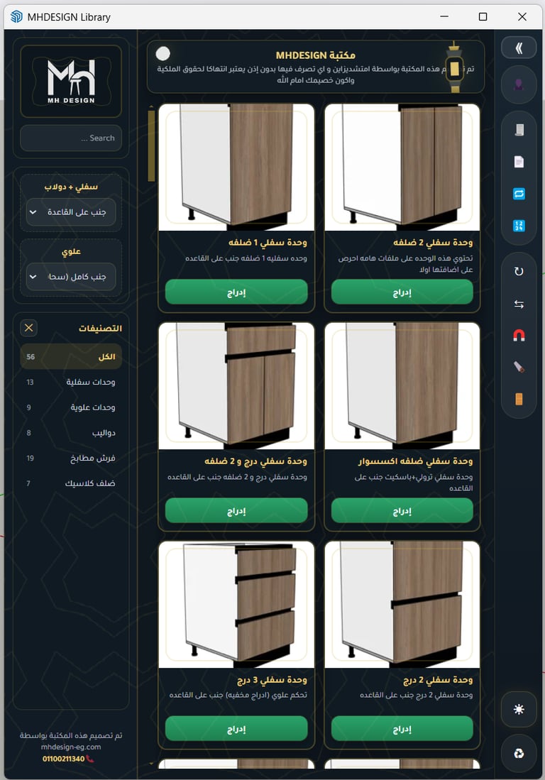كل وحدة لها صورة واضحة وزر إدراج مباشر داخل SketchUp.